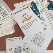 Furthermore, three posters, a roll-up, and an informative leaflet in Braille have also been distributed, as well as two types of stickers: a generic one that, under the slogan “We are members,” informs of the campsite’s adherence to the Campings For All project; and another specific one that allows campsites to indicate which bungalows, bathrooms, swimming pools, etc. are “Adapted Space.” In all cases, these materials are designed with a focus on inclusive tourism, including for people with visual difficulties. To achieve this, the font size of the materials has been adapted, and a suitable color contrast has been sought, as well as the inclusion of a QR code in all materials that leads to a website adapted for blind people. Specifically, an adaptation in this regard has also been made during September for restaurant menus.